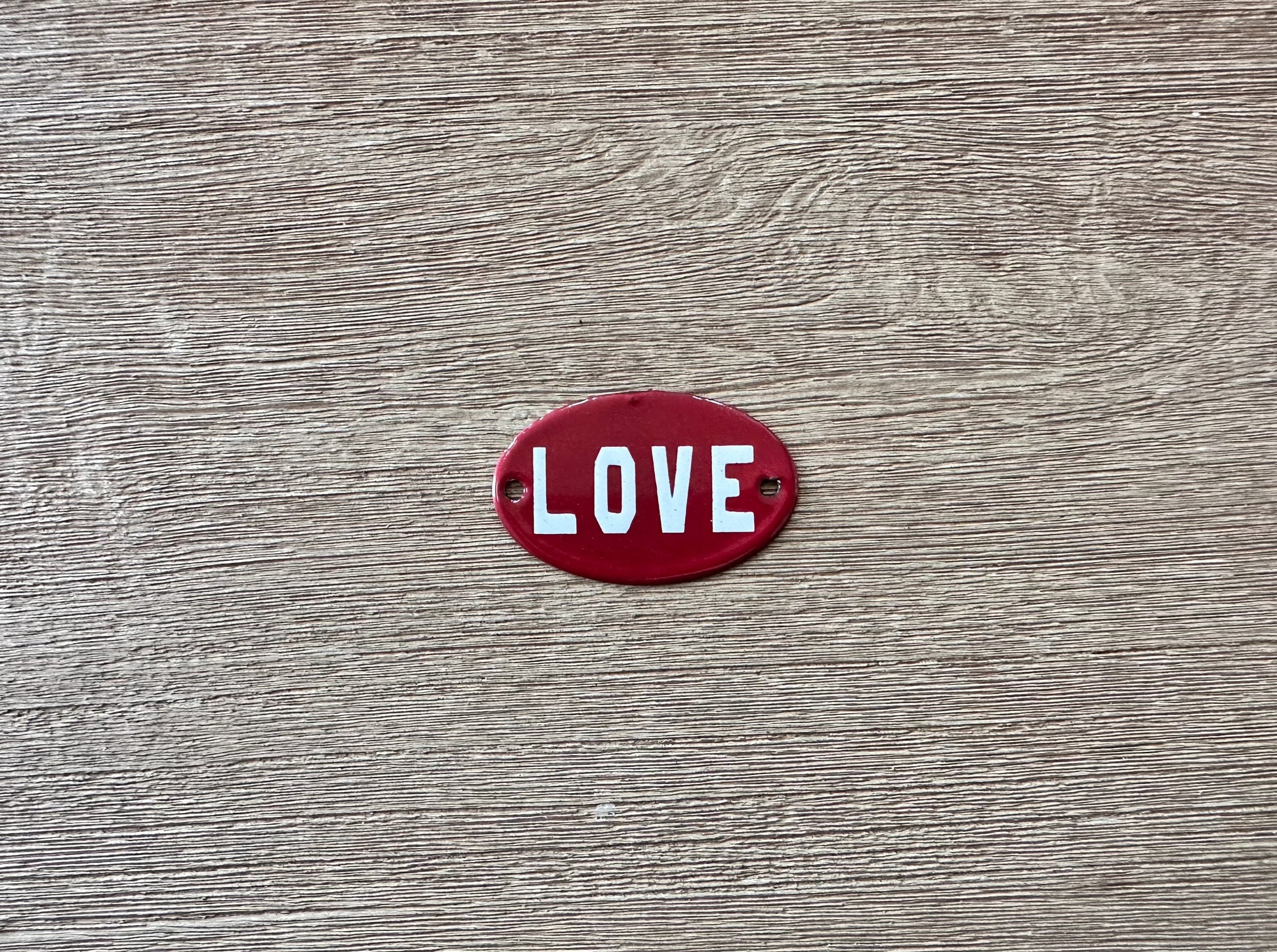 Introducing our Petite Oval Metal Sign, a heartfelt addition to your space, adorned in a passionate shade of red with the word "Love" scripted in pure white. This compact gem measures 2.17 by 1.38 inches, making it a subtle yet powerful declaration of affection.